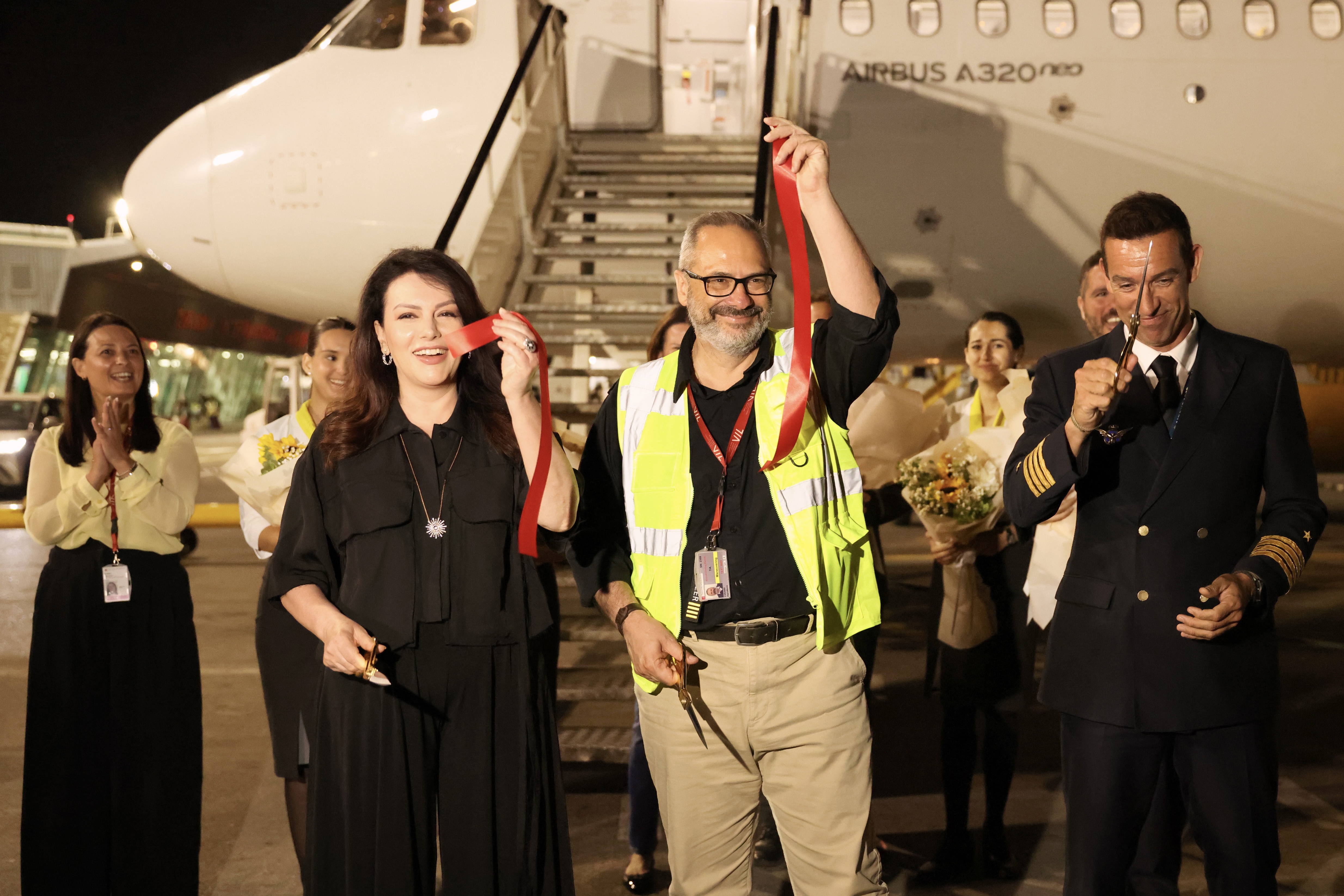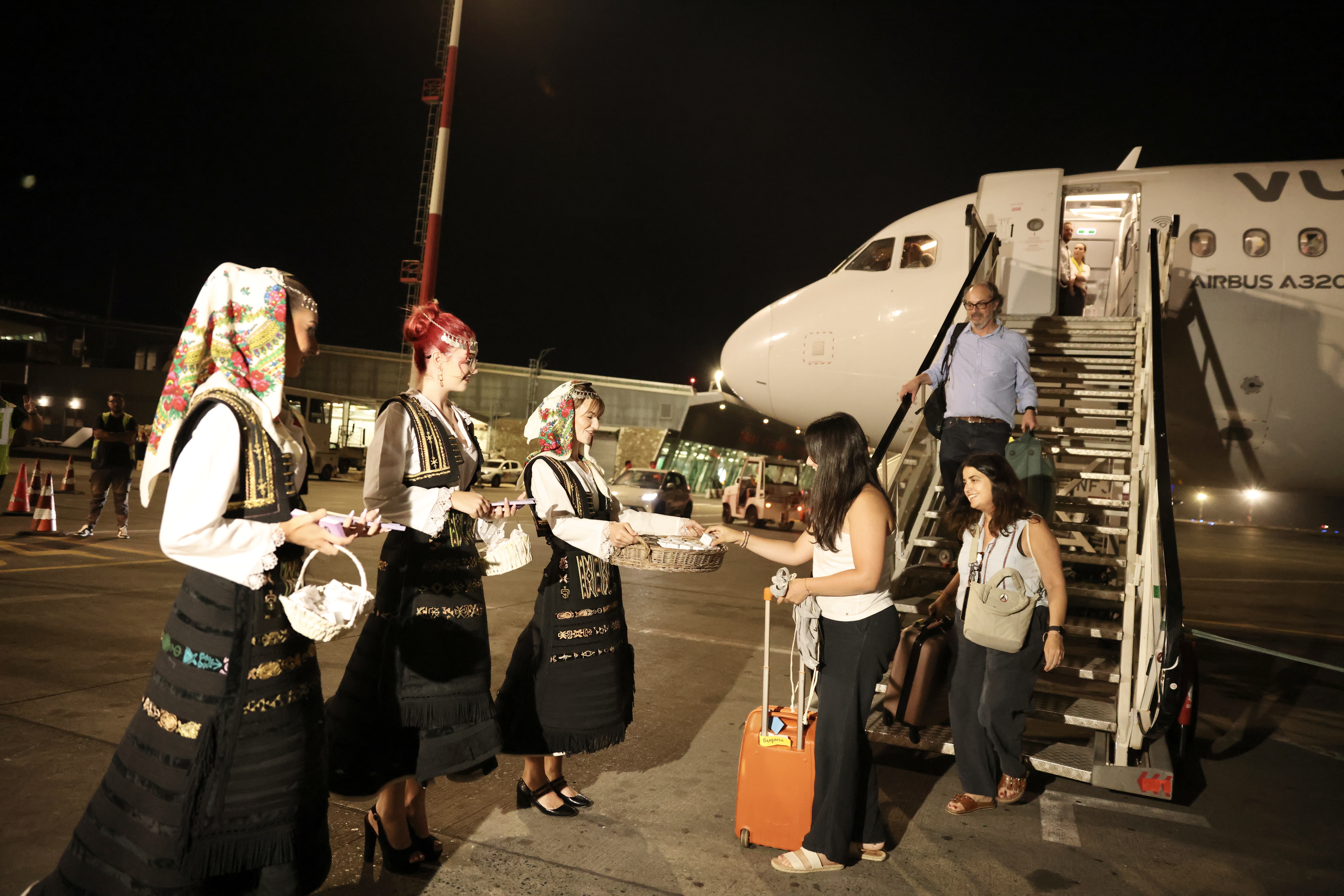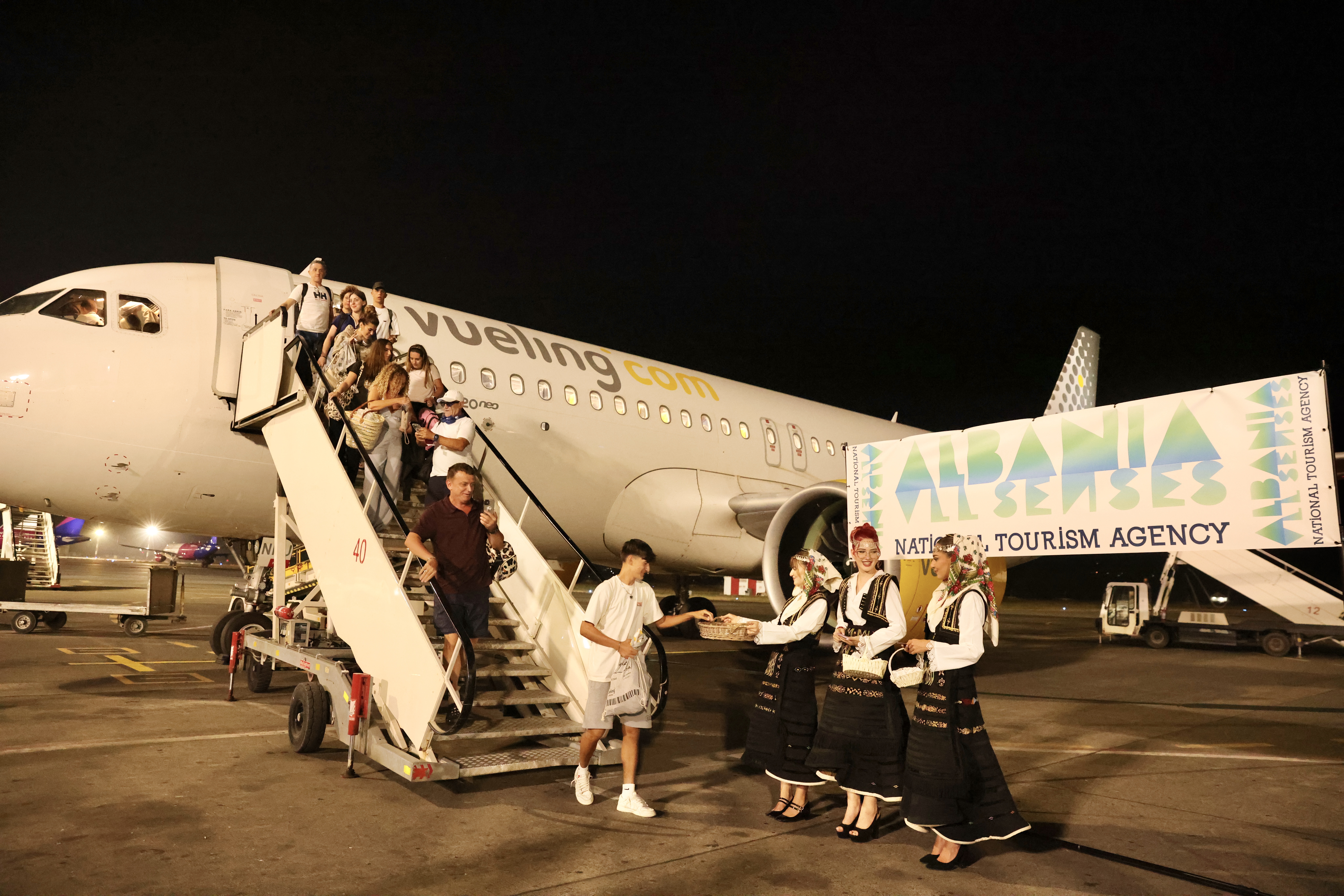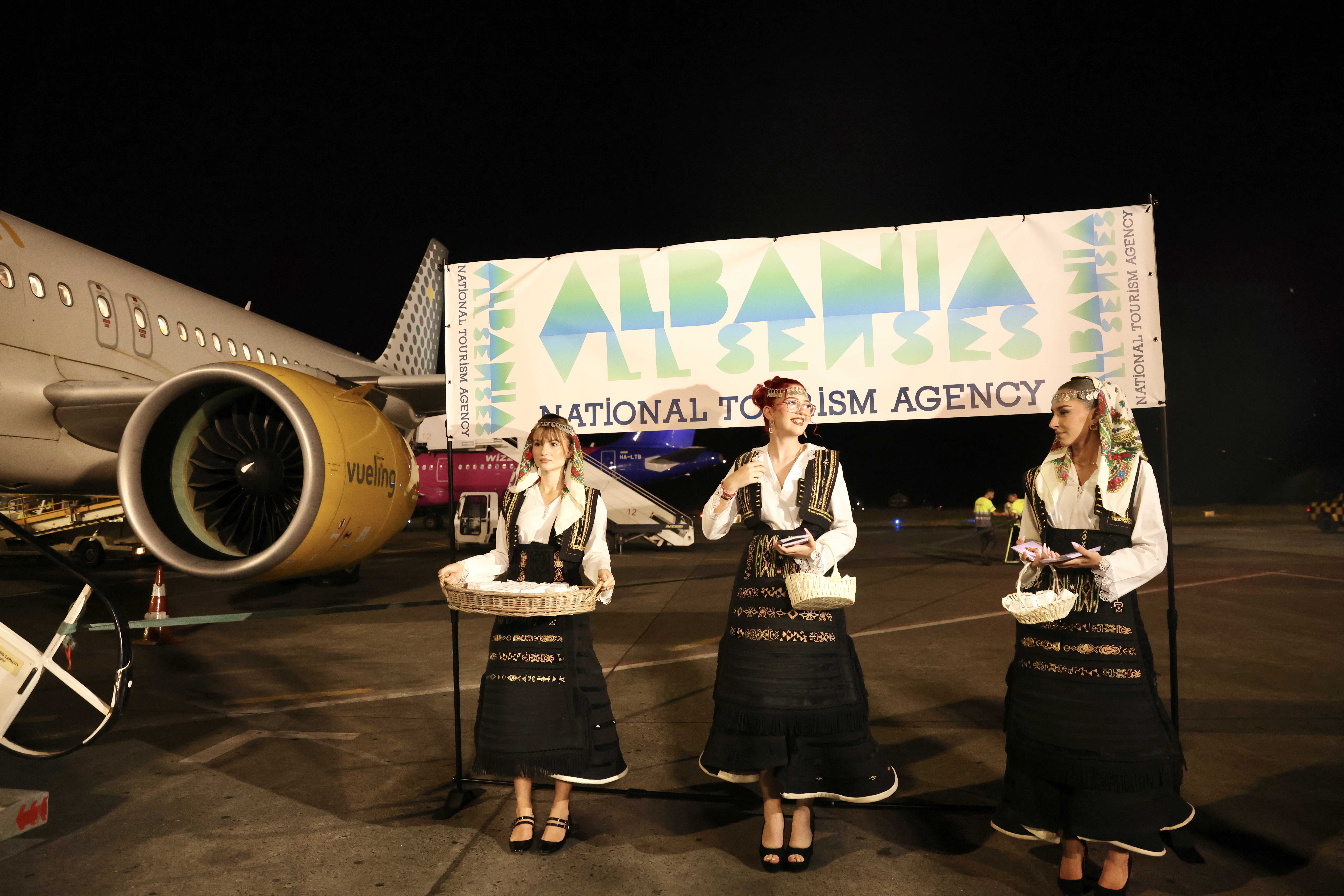 The flight landed at Tirana International Airport “Mother Teresa” at 9:40 PM, where it was welcomed with a special reception ceremony attended by Ms. Zana Cela, Director of the National Tourism Agency of Albania, and Mr. Piervittorio Farabbi, Chief Operating Officer of TIA.